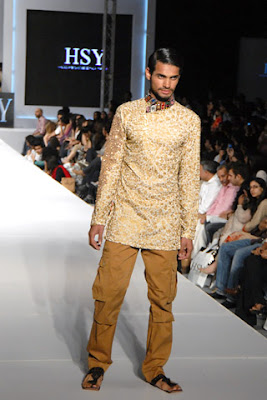 Final show of PFDC Sunsilk Fashion Week 2011 Lahore third day concluded with HSY latest collection presented for both men and women celebrating the innovative style and creativity of Pakistani traditional outfits Fashion choreographer cum fashion designer Hassan Sheheryar Yasin (HSY) is known for infusing life into outfits and crafting exceptional designs over them. His latest collection presented at PFDC Sunsilk Fashion Week 2011 Lahore took inspiration from indigenous beauty of Pakistani women and was entitled “Voyage National" that perfectly reflects his thought process behind this collection. Final show of PFDC Sunsilk Fashion Week 2011 Lahore third day concluded with HSY latest collection presented for both men and women celebrating the innovative style and creativity of Pakistani traditional outfits. Hassan Sheheryar Yasin collection at PFDC Sunsilk Fashion Week 2011 Lahore was presented in capturing way by DJ Shahrukh with percussionist Sikander Mufti live on runway. Hassan Sheheryar Yasin has third time availed the prestigious chance of showcasing his collection at PFDC Sunsilk Fashion Week as he had also marked the runway of PFDC Sunsilk Fashion Week 2010 Karachi through his luxurious collection. HSY Voyage National at PFDC Sunsilk Fashion Week 2011 Lahore was a fascinating attire journey of Pakistani regions that he produced into his own HSY prints. At PFDC Sunsilk Fashion Week 2011 Lahore Hassan Sheheryar Yasin (HSY) said “Each embroidered piece hailing from areas such as Manshera, Balakot, Haripur, Quetta, Tharparkar and Sukkhur tells a story, each embellishment has a history and each ensemble echoes the proud heritage of its creators. Bringing back pride to the term “Made in Pakistan”. Fashion designer Hassan Sheheryar Yasin (HSY) launched his label in 2000 and is known to blend modern trends with traditional ones since then
